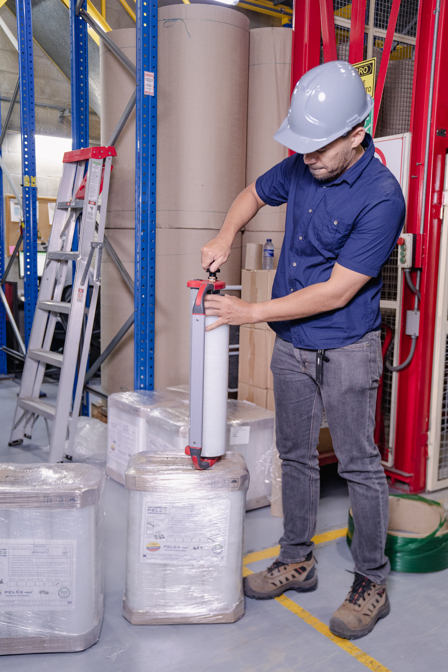 - Herramientas: Contamos con diferentes herramientas para la aplicación de insumos como película stretch, cinta adhesiva y zunchos.